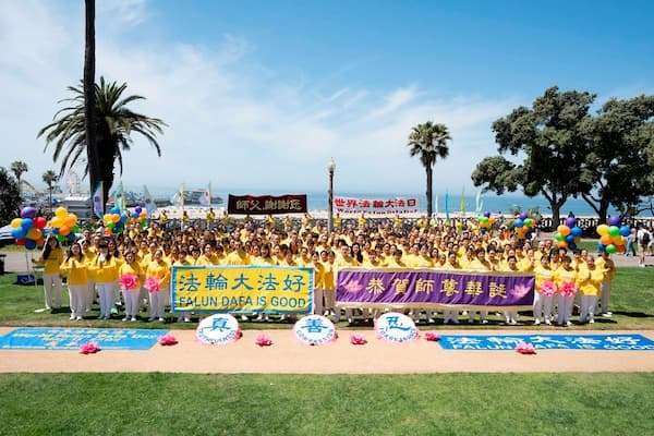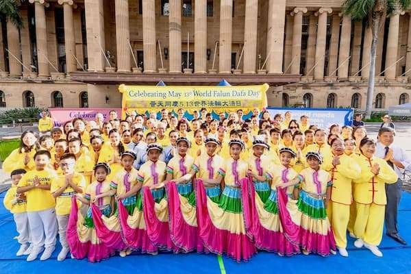 他们来自社会上的各个领域,各个族裔,男女老少,伴随着祥和的炼功音乐,展示着平和优美的五套功法。中午十二点开始,学员们开始丰富多彩的文艺表演,向民众展现法轮大法的祥和美好,表达对师尊的无尽感恩。